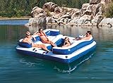 The 4-Person Island is an excellent choice for floating in a river or lake with friends. Constructed using durable, high-gauge PVC material, the bouncer X4 comfortably seats 4 people and features built-in backrests for additional support, a cool mesh bottom, and 4 cup holders. The all-around grab rope makes it easy to mount from the water. It also includes 2 built-in coolers allowing you to take along frosty beverages and small snacks. It’s perfect for memorable summertime fun. 4-person inflatable raft Premium construction with backrests Cool mesh bottoms 2 built-in coolers 4 cup holders 2 air chambers Screw valve Sturdy pre-tested vinyl All around grab rope with built-in grommets Heavy-duty repair patch 18-gauge vinyl Color: Yellow Dimensions: 101 x 101 x 21 inches Weight: 23 pounds Condition: New