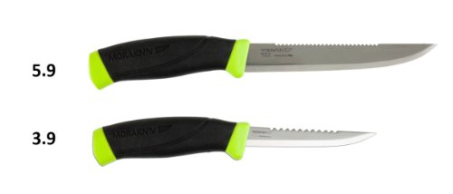 The Mora Fishing Comfort Scalers are high-quality, all-around knives with a serrated back for scaling fish. This longer version has a 3.9-inch (98 mm) Sandvik stainless steel blade. Patterned high-friction grip handle and “Easy-Clean” sheath with two interchangeable belt clips. Mora Stainless steel options are ideally suited for marine, fishing, outdoor and construction applications, where knives see hard use and are commonly exposed to dirt and moisture. The chromium content of stainless steel makes them less susceptible to corrosion and oxidation than carbon steels, giving them a longer life overall. Mora Knives are made from high-quality Sandvik steel. Sandvik knife steels are characterized by ultra-fine carbides that result in superb forging and hardening properties. The absence of large carbide deposits promotes excellent edge sharpness for optimum cutting performance. Morakniv has been manufacturing the highest-quality knives in Mora, Sweden since 1891. Professionals worldwide trust the quality materials and fine craftsmanship of Mora Knives. Mora knives feature ergonomically-designed handles and employ premium-quality knife steel that is optimally adapted to the task for which the knife is intended.