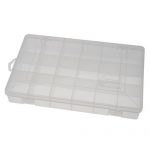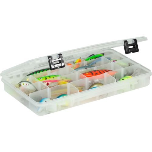 The Plano® ProLatch™ Stowaway Tackle Box is made of clear plastic and features adjustable dividers that create 4 – 24 compartments. Available at Academy Sports + Outdoors.