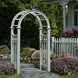 The elegant, classically styled Gardman Kensington 7ft. Metal Arch Arbor adds a stunning feature to any garden. With a perfect arc at the top, this piece makes a beautiful entrance to a garden and is also a delightful accent piece in your yard or garden. Or add the Kensington Gate or Kensington Seat for a different effect in your garden. Horizontal bars offer additional support and a place to hang lightweight potted plants, as well as the ideal spot to train climbing vines and flowering plants. The Kensington Arch is constructed of steel tubing with a black verdigris powder coat finish and is weather-resistant. Assembly required. Dimensions: 45W x 20.5D x 82H inches.