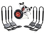 Part of the support stand features a 9-1/4″H spring-loaded stand which keeps the dolly cart propped up onshore for quick loading out of water. Large 9-1/2” diameter inflatable tires provide stable support on uneven terrain which is especially useful in sandy areas. Easily rest a kayak or canoe on the dolly cart platform, strap it down and it’s ready to go. It is foldable, easy for storage.